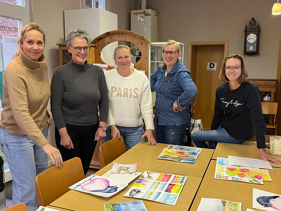 Nach den Workshops "Pferde zeichnen" wage ich mich nun an das große Thema Aquarell heran. Bereits zwei Workshops fanden in der gemütlichen Klönstuv in Erkerode statt - weitere sind in Planung. Richtig toll, die Ergebnisse zu sehen - vor allem bei Telnehmenden, die zuvor noch gar keine Erfahrungen mit Pinsel und Farbe gesammelt haben.